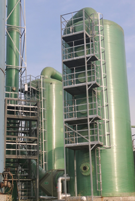 玻璃鋼洗滌塔:  玻璃鋼洗滌塔利用廢氣與液體的接觸,液體吸附污染物,再將清潔氣體與被污染的液體分離,達(dá)到凈化的目的。 簡易工作原理廢氣由填充式洗滌塔底部進(jìn)入,采用氣液逆向吸收方式,即帶洗滌液水自塔頂向下以霧狀或小液滴向下噴灑,通過多重氣、液接觸、相溶,將氣體里面的污染物分離出來...